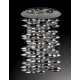 This MERCURY CLUSTER of floating spirit dangles large mercurial floating dollops below a modern aluminum disc. Incorporating the dynamics of natural light and the motion of people moving about the room, this elegant sculpture seems to be in constant movement. It flows similarly to the Mercury Ceiling and the Mercury Suspension but with more complex characters.