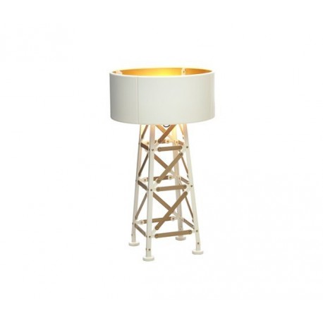 The Construction table lamp was inspired by the vast number of combinations possible with the tools and bolts . This exciting, original design is offered in matte black with brass screws or matte white with wood and brass screws. Provides ambient illumination.