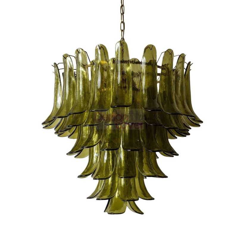 Le lustre Petalo se distingue par ses pétales en verre soufflé à la main, déclinés dans une teinte olive riche, formant une silhouette spectaculaire et sculpturale. Proposé en versions à 6 ou 8 niveaux, il évoque le glamour du design italien des années 1970 — parfait pour les hauts plafonds, les cages d’escalier ou les espaces de vie élégants en quête d’une pièce maîtresse audacieuse.