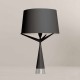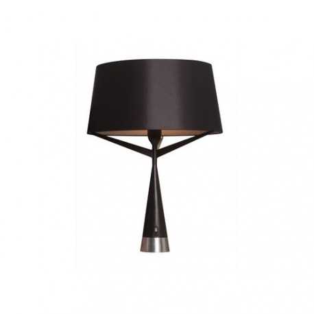 La lampe de table S71 est composée d'une structure en métal, d'une base argentée et d'un abat-jour en tissu.